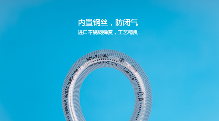 5、管體內(nèi)置不銹鋼彈簧,防止管體壓扁扭曲而產(chǎn)生閉氣;